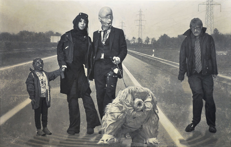 Malkos, Naïma, Arthur, Johan et Mardi Gras (night vision) 130 / 205 cm, acryl & phosphorescent pigments on canvas, 2018.